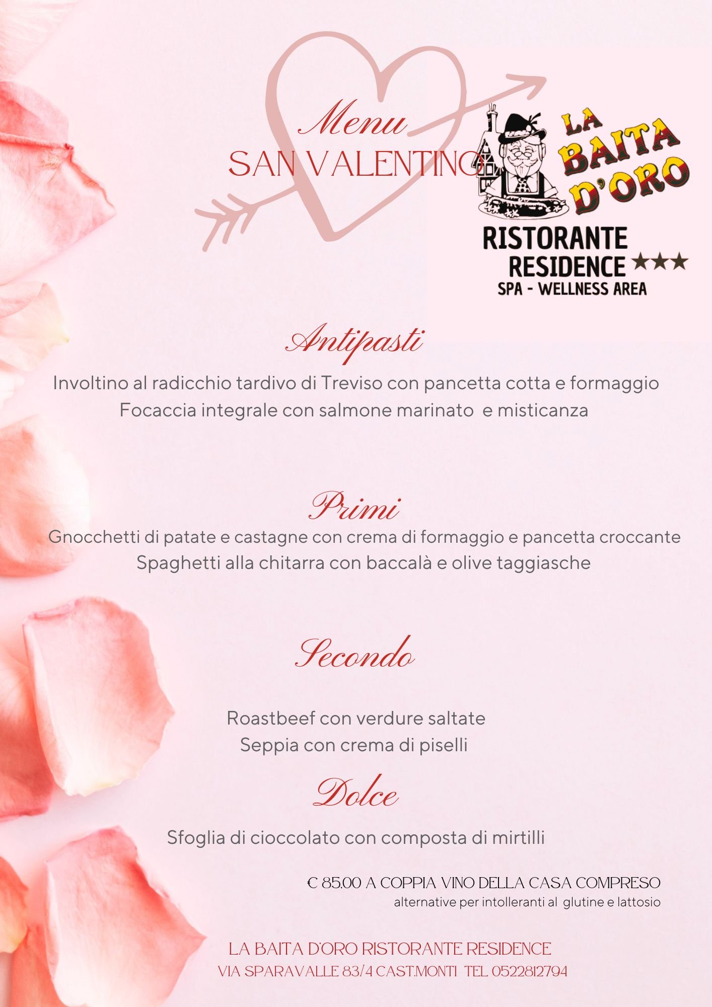 Alla Baita dโOro abbiamo pensato a un menรน speciale, studiato per valorizzare ingredienti di qualitร e sapori ricercati, da condividere con la persona che ami.